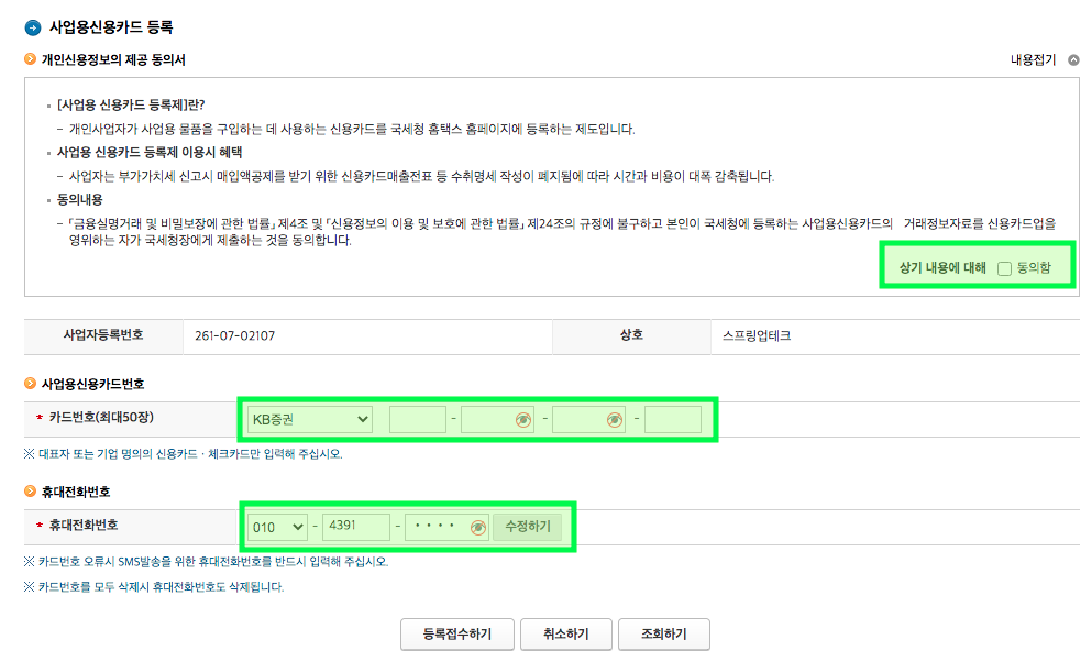 사업용 신용카드를 등록하는 것은 비교적 간단하다.