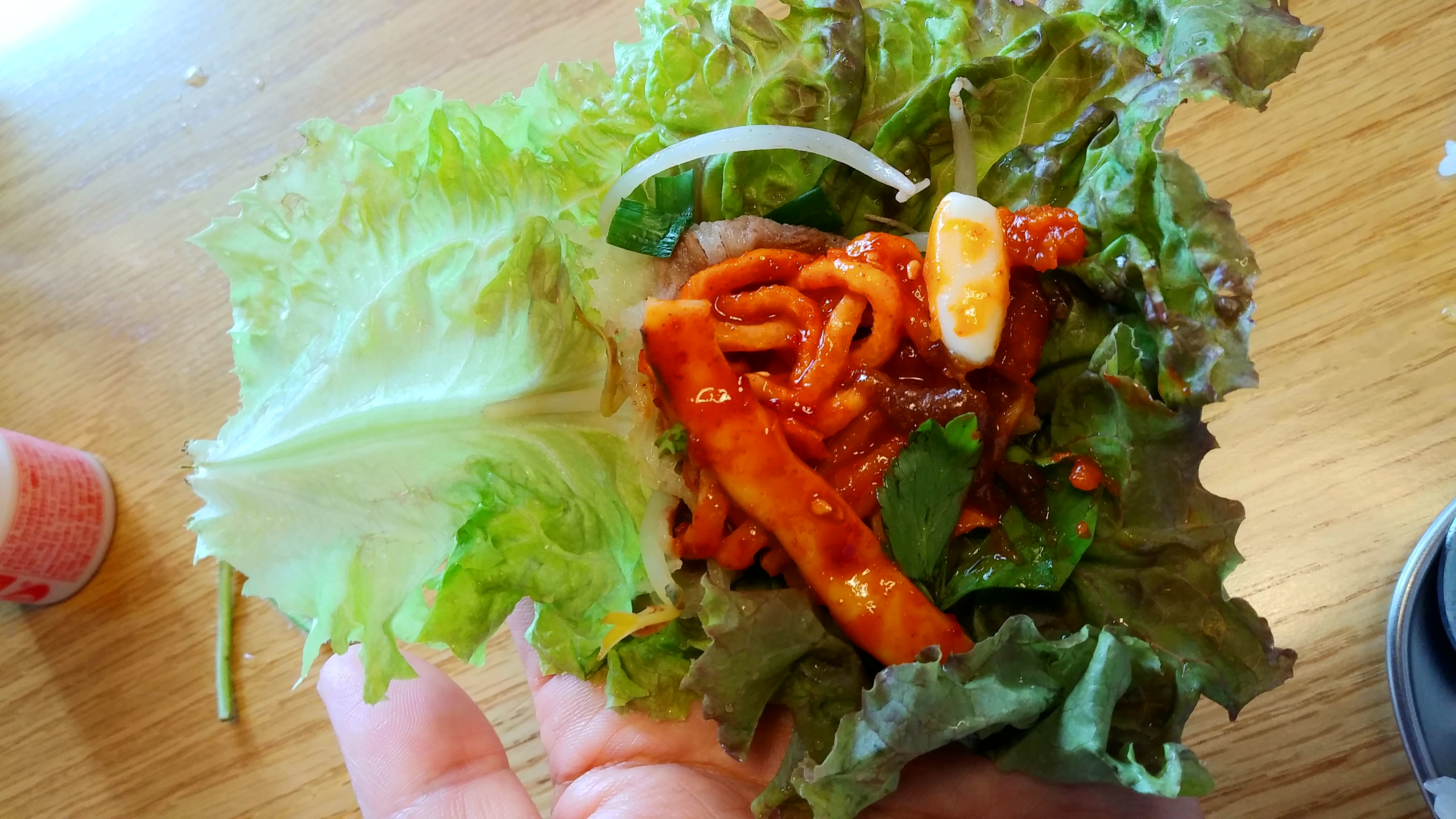 그리고 소고기와 오징어무침을 싸먹는다 ㅎㅎ