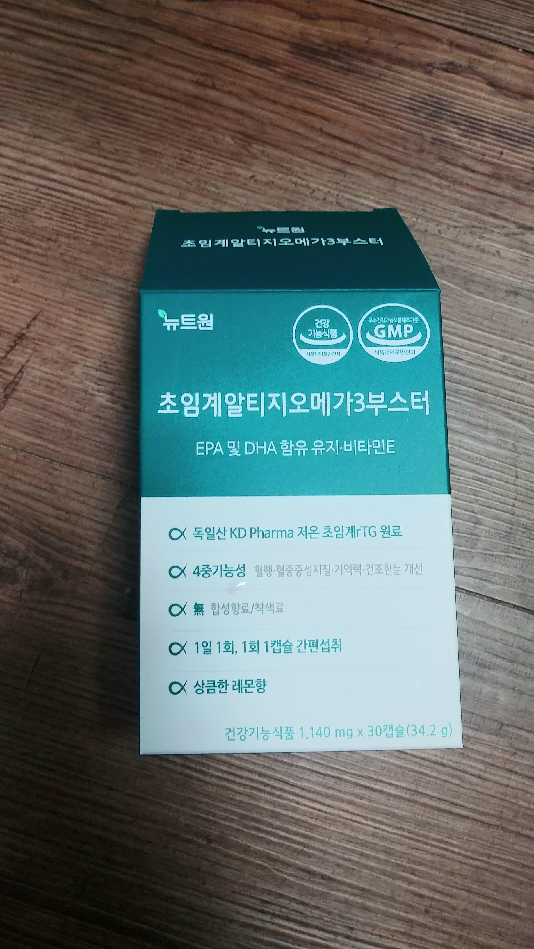 뉴트원초임계알티지오메가3부스터 라고 이름이 먼가 거창하다. 상큼한 레몬향이 있어서 비린내? 는 나지 않는다. 오메가3 를 먹는다면 추천한다.