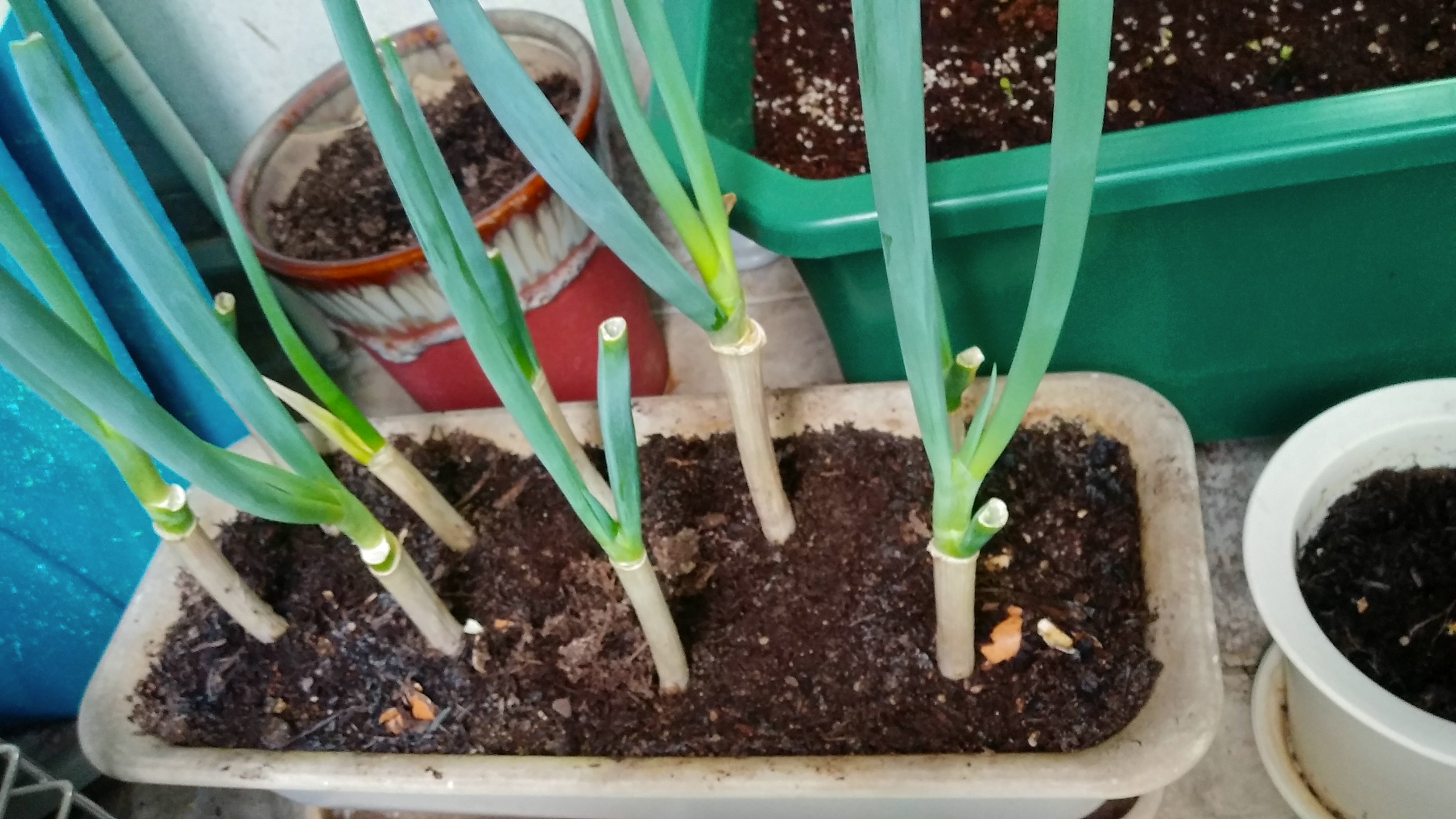 대파는 따로 묘종이나 씨를 구입하지 않고, 시중에서 산 대파의 뿌리 부분만 잘라내어 다시 심었다. 대파는 항상 잘 자란다. 저렇게 2번 정도는 파 부분만 자라게 해서 다시 먹을 수 있다.