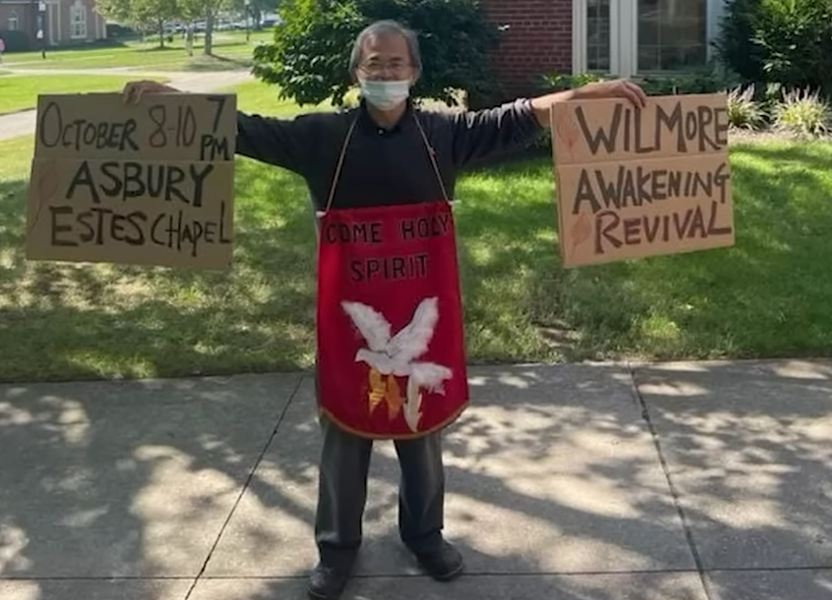 이 부흥이 있기 전에 사용하셨던 기도의 사람들이 있었다. 현장을 방문한 류응렬 목사는 말레이시아 교수 출신 무명의 기도 용사 한 명을 만나 인터뷰를 했다. 2016년 애즈베리 대학에 방문교수로 온 말레이시아 신학자, 홍 투 리오우 박사 (Dr. Hong Too Leow)는 “교수직을 내려놓고 애즈베리 대학의 부흥을 위해 기도하라”는 하나님의 음성을 듣고, “제게는 책임져야 할 처와 자녀들이 있습니다.”고 반문 했으나, 기도에만 전념하라는 명령을 따라 무조건 기도를 시작했다. 류 목사는 “리오우 박사는 미국교회에는 없는 새벽기도를 시작해, 매일 새벽 5시에 다른 동역자들과 함께 기도를 시작했다. 어느 날은 ‘사인을 달고 기도’하라는 명령을 듣고, 몸에 커다란 플래카드를 메고 다니기 시작했으며, ‘샌드위치맨’, ‘맨 위드 더 사인 (Man with the sign)’이라는 별명을 얻으며 지역에서 유명해 졌으나 하나님의 영광 보다 자신의 이름을 알리게 될까 두려워 수많은 방송사들의 인터뷰를 모두 거절했다”고 전했다.