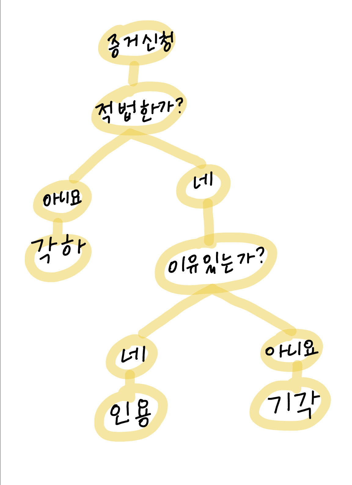 - 각하: "문서가 잘못됐으니 아예 볼 것도 없이 반려합니다."