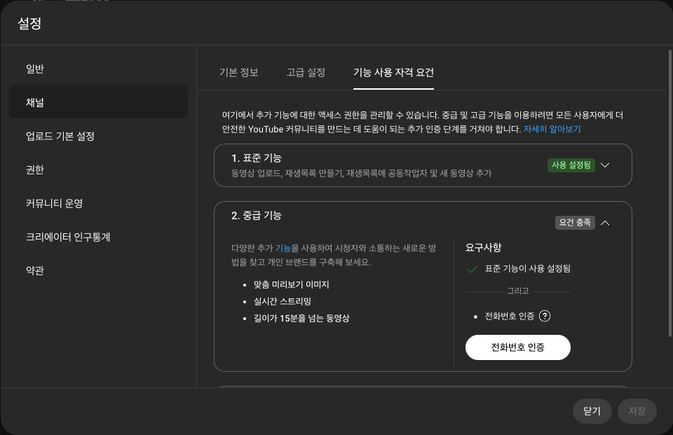 유튜브 계정의 개인 계정이나 브랜드 계정의 전화번호 인증 방법