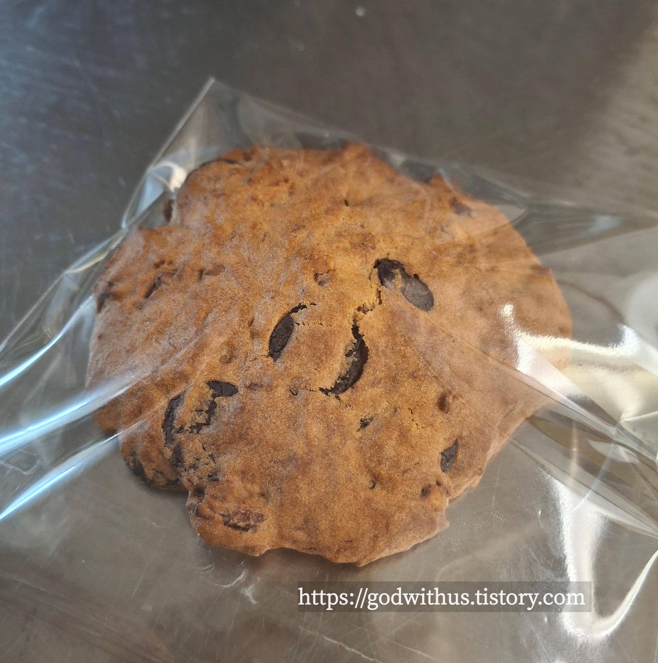 르뱅 쿠키는 개당 170g 정도로 크기가 어마어마해요! 바깥은 바삭, 안은 쫀득하고 촉촉한 식감에 초콜릿과 호두의 풍미가 가득하죠. 따뜻하게 데워 먹으면 더 맛있답니다. 🥰